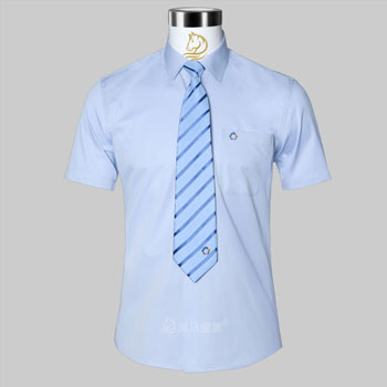 藍色標準領女士短袖襯衫