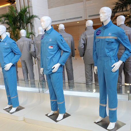 勞保服裝的主體顏色應(yīng)區(qū)別于作業(yè)場所背景色,不得影響各種色光信號的正確判斷。因此, 1、油田板塊有國旗紅和橘紅色兩種,其中橘紅色用于海上作業(yè)。 2、煉化板塊采用煉化藍(lán)。 3、銷售板塊有藍(lán)色和紅黑色兩種顏色,日前樣衣正在試穿,顏色待定。 4、工程建設(shè)板塊有煙灰色和湖藍(lán)色兩種,企業(yè)自行選擇其中一色。44,42,45,76,92,94,39,121,122